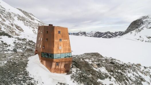 Необычное сооружение Sasso Nero площадью 510 кв. м, расположенное в коммуне Валле-Аурина, возвела компания Stifter + Bachmann. Шестиэтажный объект появился в Итальянских Альпах на высоте 3 026 метров над уровнем моря. Два нижних этажа здесь занимают технические помещения, а три верхних отведены под комнаты для альпинистов, в которых предусмотрено 50 спальных мест. Также тут имеется ресторан.
