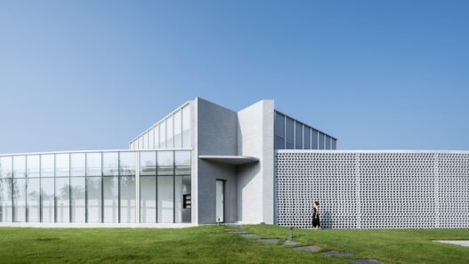 Спроектировали данное сооружение специалисты Wutopia Lab. Общая площадь расположенного посреди парка комплекса достигает 1272 кв. м. Объект состоит из нескольких зданий и просторного внутреннего двора с водным садом. Все постройки расположены симметрично и удачно вписываются в трехугольный план.