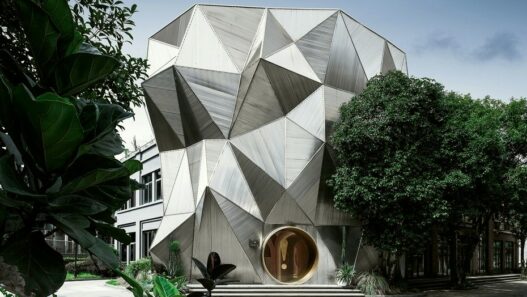 Экстерьер необычного выставочного зала, предназначенного для одного из мебельных брендов, похож на скалу. Фасады такого здания отделаны панелями из нержавеющей стали. Реализованный проект получил название Ya Space!, и поэтому не случайно на входной двери здесь можно увидеть восклицательный знак, символизирующий чувство удивления. На первом уровне объекта находится вестибюль, а верхний этаж занимает выставочное пространство.