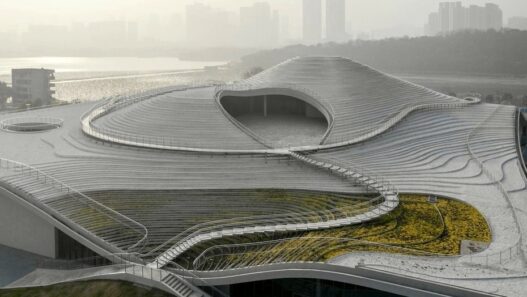 В китайском городе Ухань возвели масштабный объект, прекрасно вписавшийся в местный ландшафт и напоминающий естественную возвышенность.