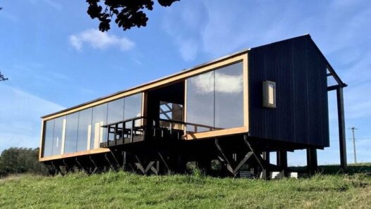 Оригинальное деревянное здание, расположенное в живописной загородной