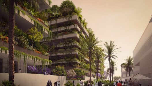 Такие здания высотой 30 метров и шириной 30 метров назвали вертикальными лесами, т.к. их террасы полностью заполнят живыми растениями. Всего планируется разместить в трех домах 350 деревьев и 14 тысяч кустов свыше ста различных видов. При этом каждая квартира получит собственный балкон, засаженный такими растениями. Предполагается, что озеленение поможет обеспечить естественную тень в помещениях и заметно улучшит качество воздуха.