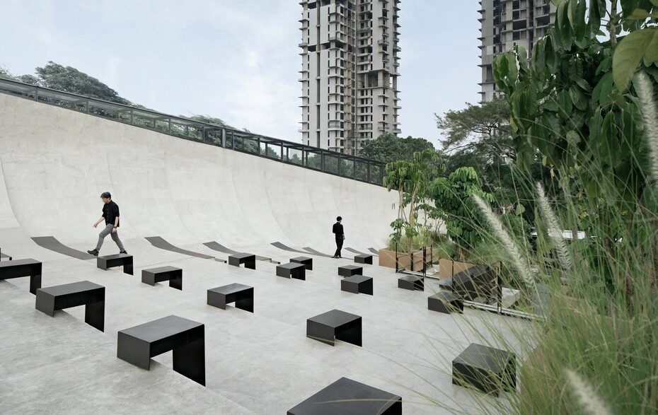 Оригинальное заведение общепита с волнообразной бетонной террасой возвели в Джакарте.