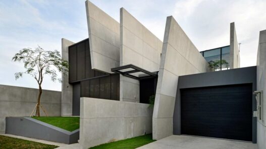 Проект, над которым работали специалисты Ivan Priatman Architecture, получил название JJ House. Жилое здание общей площадью 468 кв. м. имеет несколько параллельных стен различной длины, ставших главным организующим элементом сооружения.
