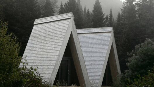 Туристический комплекс для проекта Farouche Tremblant разработали специалисты бюро Atelier l’Abri. В состав нового объекта вошли четыре компактных А-образных домика, кафе и ферма. Чтобы уменьшить негативное воздействие зданий на окружающую среду, коттеджи для гостей установили на стальных сваях.