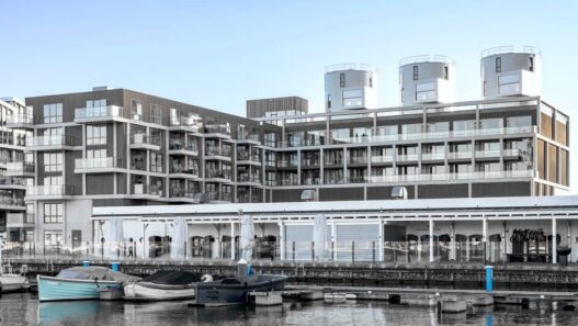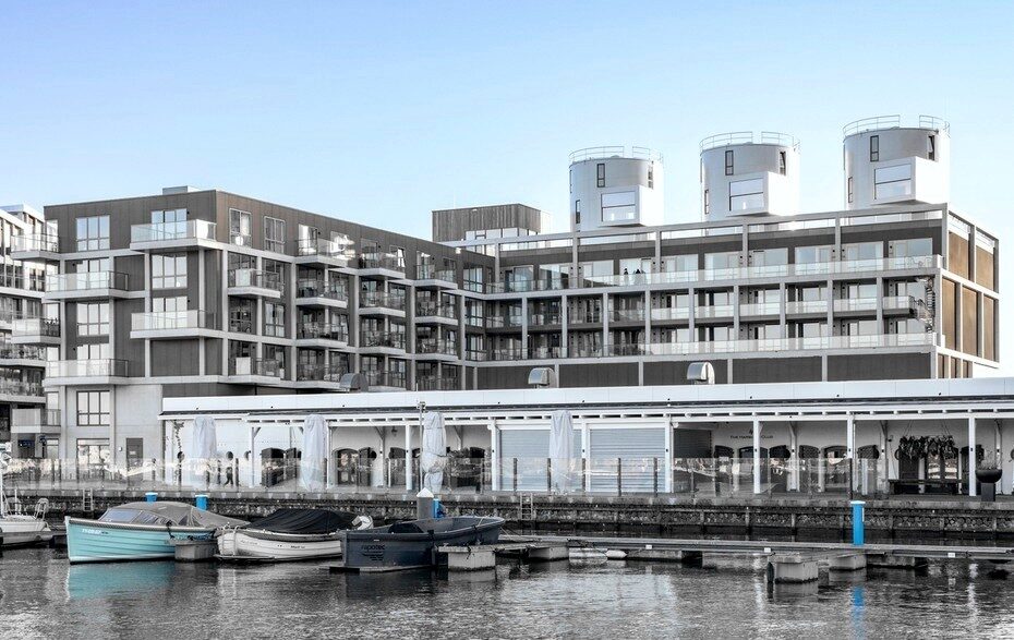 Проект Harbour Club реализовали на месте бывшей портовой территории специалисты Levs Architecten. Здесь построили L-образный жилой дом, на крыше которого установили три цистерны, в которых раньше хранилось вино. Баки предварительно очистили и произвели их теплоизоляцию. Получившиеся сооружения разделили на три уровня. Внутри теперь находится кухня, гостиная, спальня и ванная комната. В бывших цистернах также проделали панорамные окна и оснастили такие дома необходимыми инженерными системами.