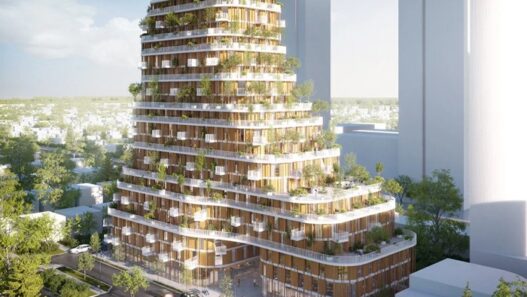 Это здание планируют возвести в 2022 году в канадском городе Ванкувере. Необычное строение будет представлять собой ступенчатый объем, покрытый навесом из живых растений. На первых трех уровнях здесь должны находиться обширные общественные зоны, а выше в двух блоках планируется разместить 200 квартир с большими террасами.