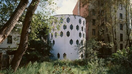 Дом известного представителя авангардизма минувшего века похож на большой цилиндр со вставками в виде компактных окон.