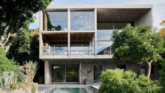Трехэтажную жилую резиденцию площадью 462 кв. м. возвели на земельном участке с роскошным садом, в котором растут дикие сливы. Тропический дом расположен поперек горного склона. При его строительстве использовались кирпич, бетон, сталь и дерево. Фасады сооружения отличаются особой солнцезащитной конструкцией, а на крыше имеется водосборный канал для наполнения дождевой водой специальных емкостей.