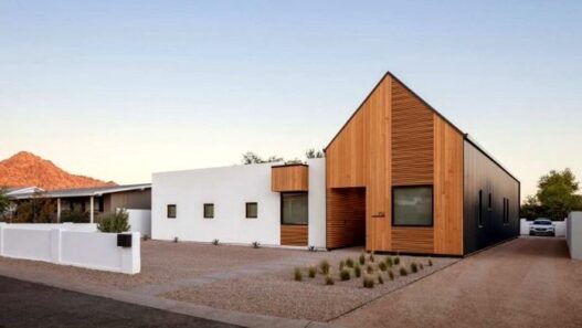 Прежде на этом земельном участке в Фениксе находился дом 1952 года постройки, но владельцы недвижимости решили его реконструировать. Архитекторы предложили им возвести U-образное сооружение с внутренним двором с бассейном. Фундамент старого дома сохранили, но остальную его часть пришлось снести.
