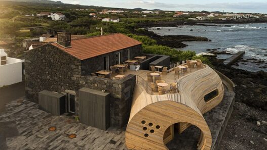 На одном из островов Азорского архипелага (Португалия) свои двери посетителям открыл бар под названием Cella Bar. Его необычные «обтекаемые» формы и древесина на фоне каменистых скал сделали это заведение любимым местом отдыха для тамошних жителей.