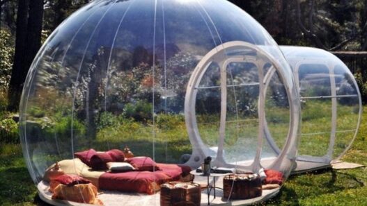 Транспортировка сооружения осуществляется в трех сумках. В одной из них находится палатка, во второй — пол, в третьей — компрессор с теплорегулятором. Установка «шара» требует всего несколько минут. Будущим владельцам предлагаются три варианта такого дома, которые отличаются диаметром основной камеры.