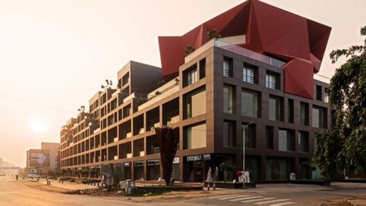 Этот объект возвели в индийском городе Ахмадабад. На первых трех уровнях здания находятся магазины, а верхние четыре этажа занимают офисные помещения. Также здесь имеется подземный гараж.