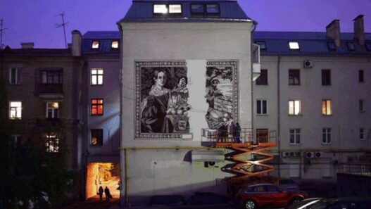 В Минске на улице Карла Маркса на стене одного из жилых домов появилась графическая иллюстрация по мотивам картины белорусского художника Ивана Хруцкого «Портрет жены с цветами и фруктами». Ее автор — 34-летний художник Дмитрий Писляк.