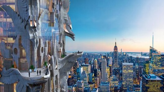 Архитектурное бюро Mark Foster Cage Architects Llc спроектировало уникальный небоскреб, который планируется построить в центре Манхэттена. Башня из камня и сверхпрочного бетона будет декорирована множеством бронзовых фигур, изображающих крылья и горгулий. Американские СМИ сравнили концепцию этого здания с домами из Готэм-сити (вымышленного города, где жил Бэтмен) и творениями художников эпохи Возрождения. «Вот что могло получиться, если бы вы оживили Микеланджело и попросили его создать небоскреб», — говорится в пресс-релизе архитекторов.