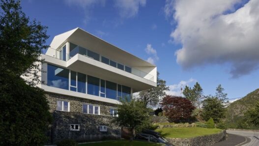 Реконструкцией данного объекта недвижимости, расположенного на склоне высокого холма, занималось бюро Saunders Architecture. Проект получил название Villa Refsnes. Неплохо сохранившийся каменный цоколь сооружения архитекторы решили сохранить, однако два верхних деревянных уровня полностью снесли. В итоге, тут появилось стильное современное здание с балконом, идеально гармонирующее с местным ландшафтом. Выразительность особняку придает необычный верхний уровень, доминирующий над остальной частью резиденции.