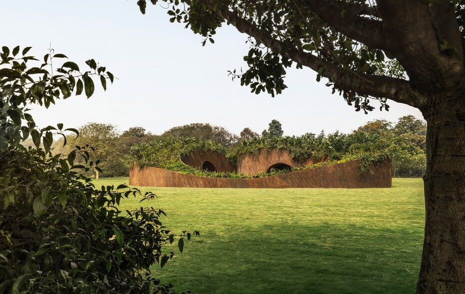 Оригинальное временное здание Aranyani Pavilion «Sacred Nature» с зеленой крышей, появившееся в парке Sunder Nursery, спроектировала студия T__M.space. Это пространство изогнутой формы создано по заказу организации Aranyani, занимающейся восстановлением природы и искусством. Новое сооружение предназначено для проведения дискуссий об экологических проблемах.