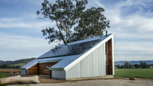 Специалисты Cameron Anderson Architects разработали проект автономного дома с односкатной крышей.
