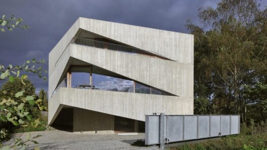 Весьма необычное жилое здание с фасадом из необработанного бетона появилось в Бельгии.
