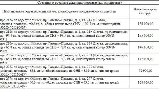 [Завершен] Аукцион по продаже квартир, находящихся в собственности г. Минска ( пр-т. Газеты «Правда», д. 1)