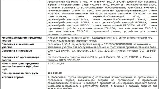 [Завершен] Открытый аукцион по продаже комплекса зданий, сооружений и оборудования по адресу: 15-км автомагистрали М-2 Минск-Национальный аэропорт Минск