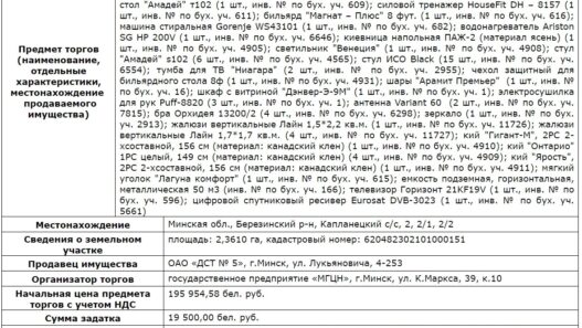 Извещение о проведении 29 апреля 2020 года торгов по продаже имущества, принадлежащего ОАО «ДСТ № 5».