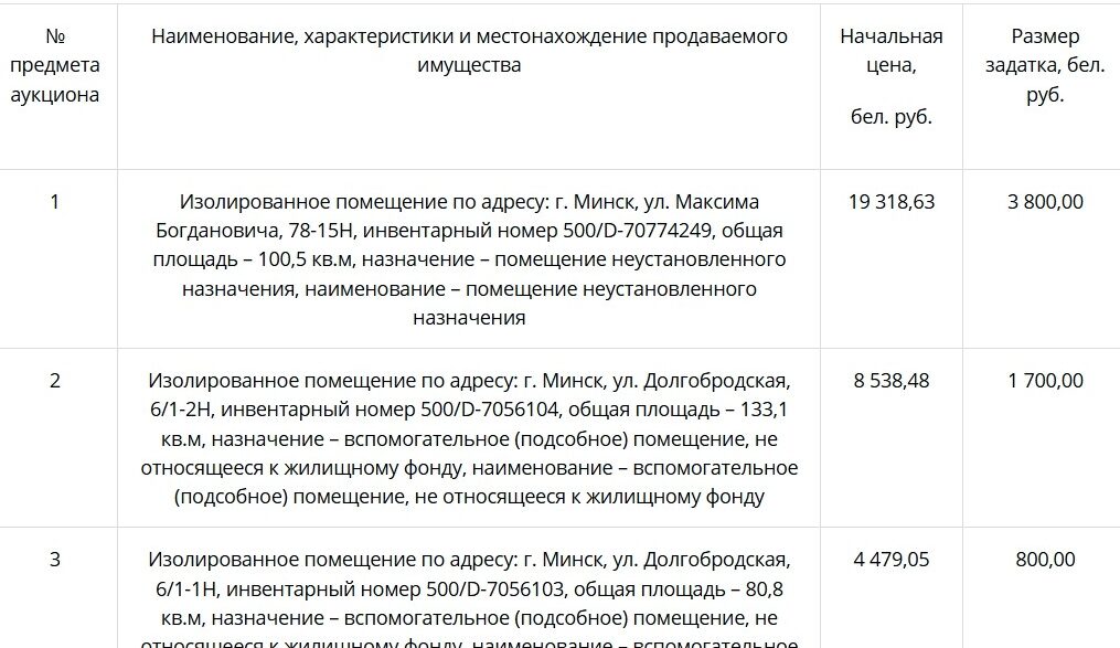 Извещение о проведении 1 июня 2021 года аукционных торгов по продаже изолированных помещений, находящихся в собственности г. Минска.