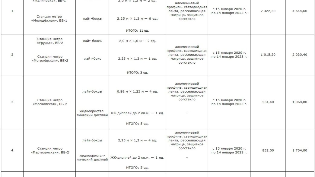 [Завершены] Извещение о проведении торгов на право заключения договоров оказания услуг по размещению рекламы на стационарных объектах Минского метрополитена