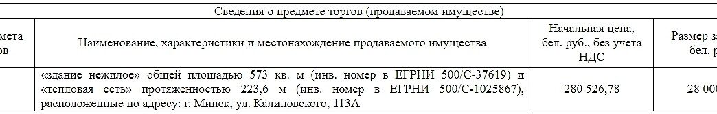 [Завершены] Повторные торги по продаже капитальных строений, принадлежащих ОАО «МАПИД» (г. Минск, ул. Калиновского, 113А)