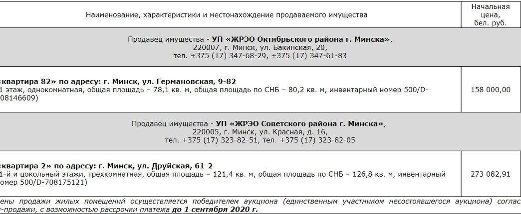 [Завершены] Повторные торги по продаже жилых помещений в г. Минске (ул. Друйская, 61 , ул. Германовская, 9)