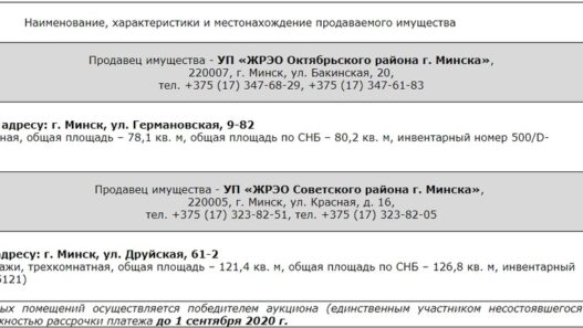 Извещение о проведении 7 апреля 2020 года повторных аукционных торгов по продаже жилых помещений, находящихся в собственности города Минска.