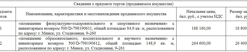 [Завершены] Повторные торги (со снижением цены) по продаже изолированных помещений по ул. Стадионная, 9 в Минске, принадлежащих ОАО «Стройтрест №35»