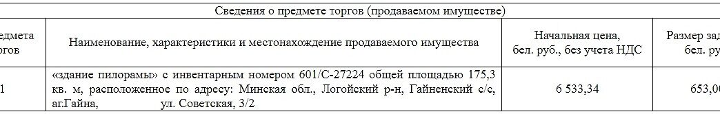 [Завершены] Повторные торги (со снижением на 20%) по продаже здания пилорамы (Минская обл., Логойский р-н, аг. Гайна, ул. Советская, 3/2)