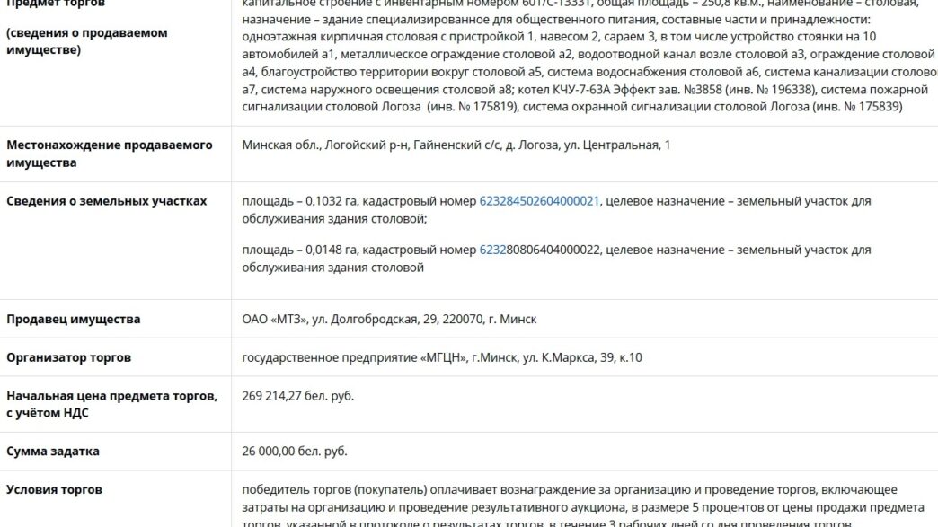 Извещение о проведении 22 декабря 2020 года торгов с условиями по продаже имущества, принадлежащего ОАО «МТЗ».