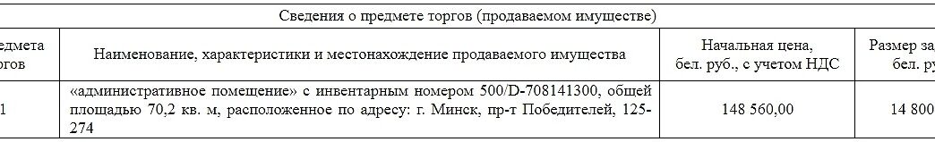 [Завершены] Торги по продаже административного помещения (г. Минск, пр-т Победителей, 125-274), принадлежащего ОАО «Трест №15 «Спецстрой»