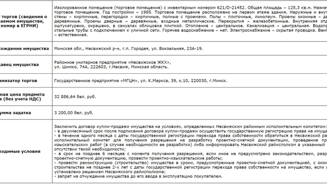 [Завершены] Торги по продаже изолированного помещения, находящегося в собственности Несвижского района