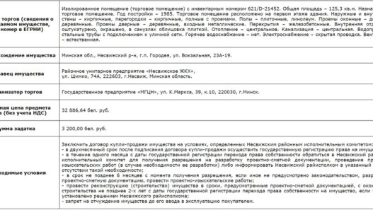 Извещение о проведении 5 июля 2019 года аукционных торгов по продаже изолированного помещения, находящегося в собственности Несвижского района.