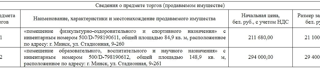 [Завершены] Торги по продаже изолированных помещений по ул. Стадионная, 9 в Минске, принадлежащих ОАО «Стройтрест №35»