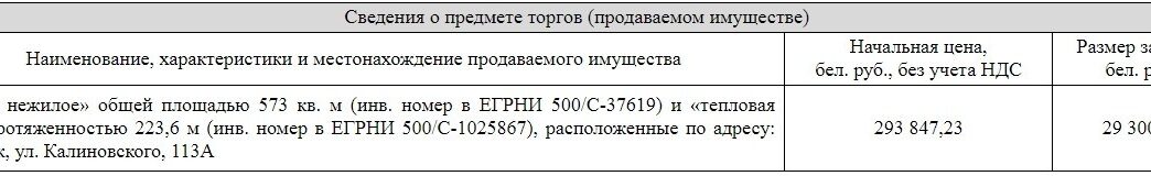 [Завершены] Торги по продаже капитальных строений, расположенных по ул. Калиновского, 113А в Минске