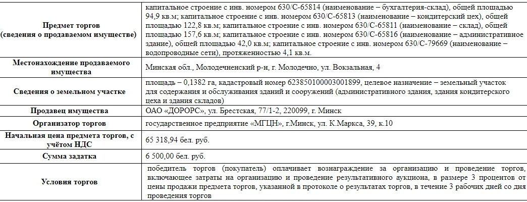 [Завершены] Торги по продаже комплекса зданий в г. Молодечно