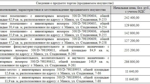 [Завершены] Торги по продаже помещений и машино-мест, принадлежащих ОАО «Стройтрест №35» (г. Минск, ул. Стадионная)