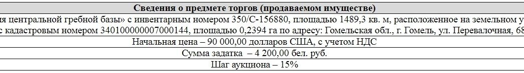 Извещение о проведении 19 сентября 2019 года аукционных торгов с условиями по продаже имущества, находящегося в оперативном управлении учреждения «Гомельская центральная специализированная детско-юношеская школа олимпийского резерва профсоюзов «Сож».