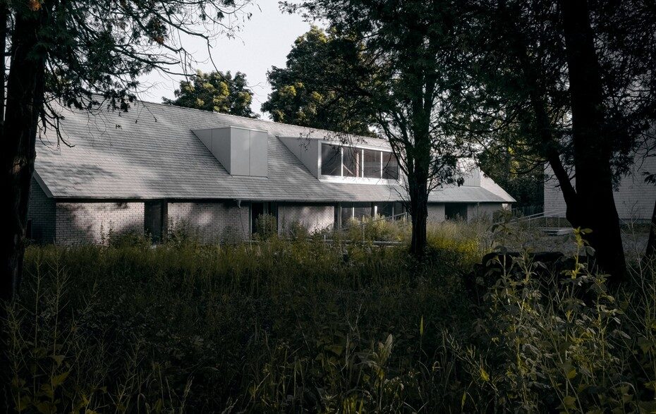 Такое сооружение, спроектированное StudioAC для частного заказчика, предназначено для отдыха на природе. Прямоугольный дом Cherry Valley площадью 232 кв. м. возвели в округе Принс-Эдвард, расположенном вдоль озера Онтарио. Одноуровневое здание с двускатной крышей находится рядом с гаражом и мастерской, «утопая» в естественном холме, что обеспечивает ему хорошую защиту от ветра. Кровлю украшают несколько мансардных окон и деревянная черепица, а фасад отделан кирпичом и светлым кедром.
