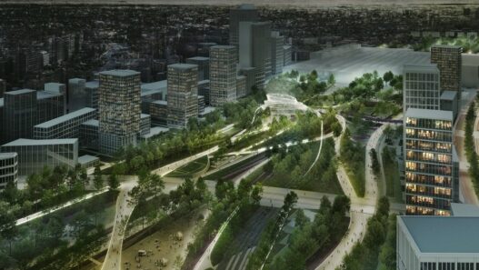 Одной из любопытных особенностей данного проекта станет передовая система управления дождевой водой. Также здесь появится «Сад ветра», где в закручивающемся по спирали пространстве с помощью зеленых растений планируется создать комфортный микроклимат.
