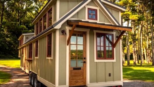 В оригинальном мобильном сооружении имеется кондиционер и стиральная машина. Хранить вещи можно в специальной нише возле кровати или в ящичках, находящиеся в ступеньках лестницы.