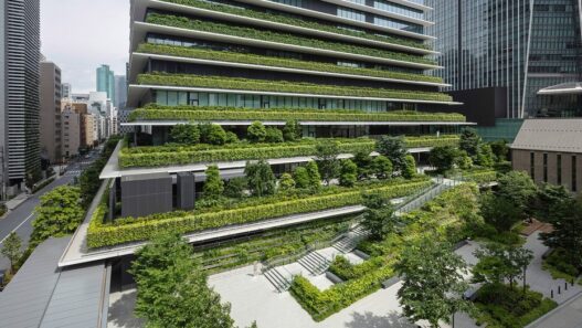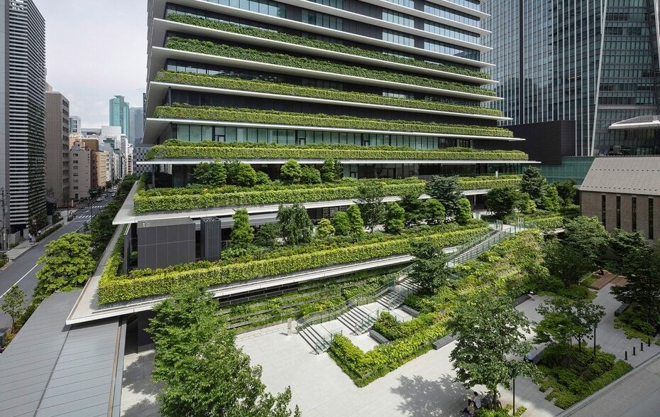 Пожалуй, самой любопытной особенностью данного масштабного проекта стала серия террас на нижних уровнях у основания каждой из башен, где высадили 154 дерева. Также растениями украшены семь нижних этажей офисного здания и часть жилого дома. Специалисты студии считает, что озеленение городских объектов может помочь в борьбе с изменением климата. Общая «зеленая» площадь нового комплекса составила около 7800 кв.м.