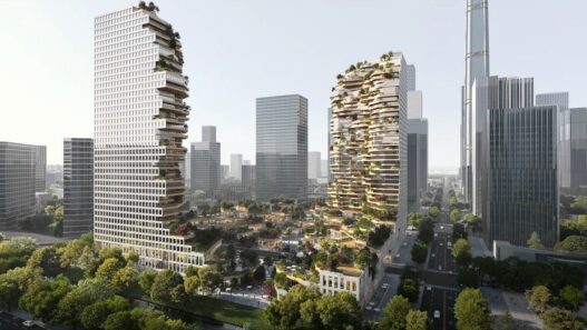 Данный объект будет состоять из двух 40-этажных небоскребов, высота каждого из которых достигнет 150 метров. Здесь предусмотрено много деревьев и других живых растений, которые появятся не только внизу, но и на террасах жилых уровней, обеспечивая защиту помещений от прямых солнечных лучей и посторонних взглядов.