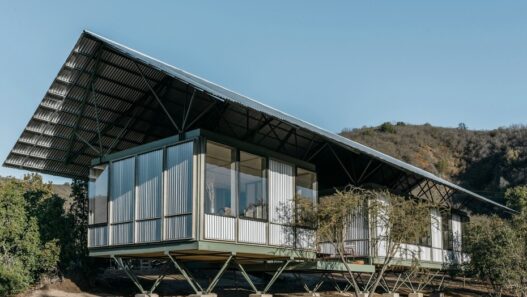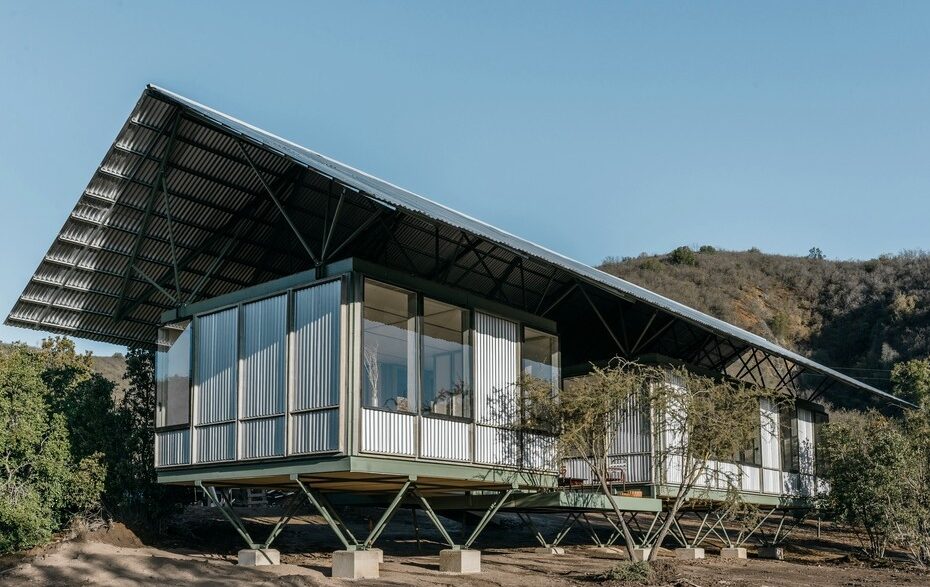 Этот модульный дом площадью около 80 кв. м. спроектировали специалисты компаний Ignacio Rojas Hirigoyen Architects и The Andes House. Для изготовления каркаса такого здания и свай используется сталь, а перегородки и стены здесь из переработанной древесины. Снаружи оригинальное сооружение, представляющее собой сейсмостойкую конструкцию, покрыто металлическими пластинами. Крыша может быть как плоской, так и остроконечной.